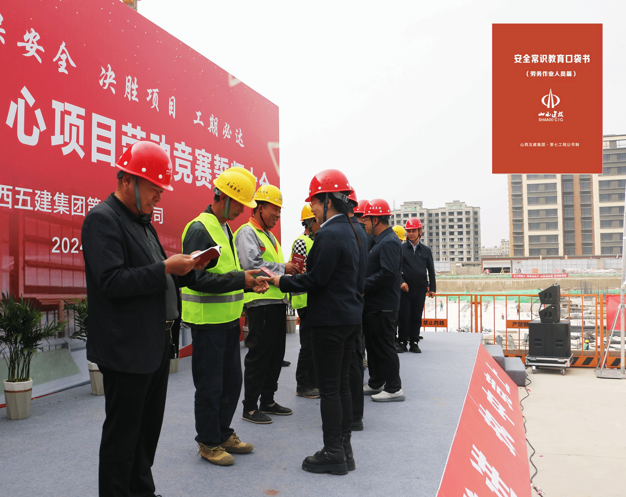 项目部积极开展“安全行为之星”评选活动,给劳务人员发放了《安全教育常识口袋书》。将存在安全生产责任意识不强、重视程度不够等问题的劳务班组,列入重点整治对象,严厉处罚施工现场出现的“三违”行为。
