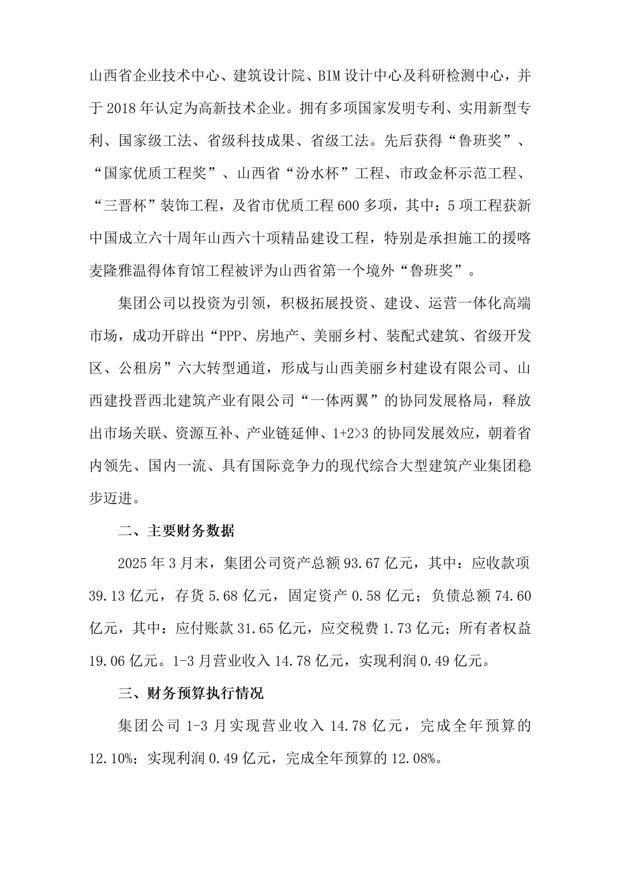 山西五建集团有限公司2025年一季度企业重大信息公开