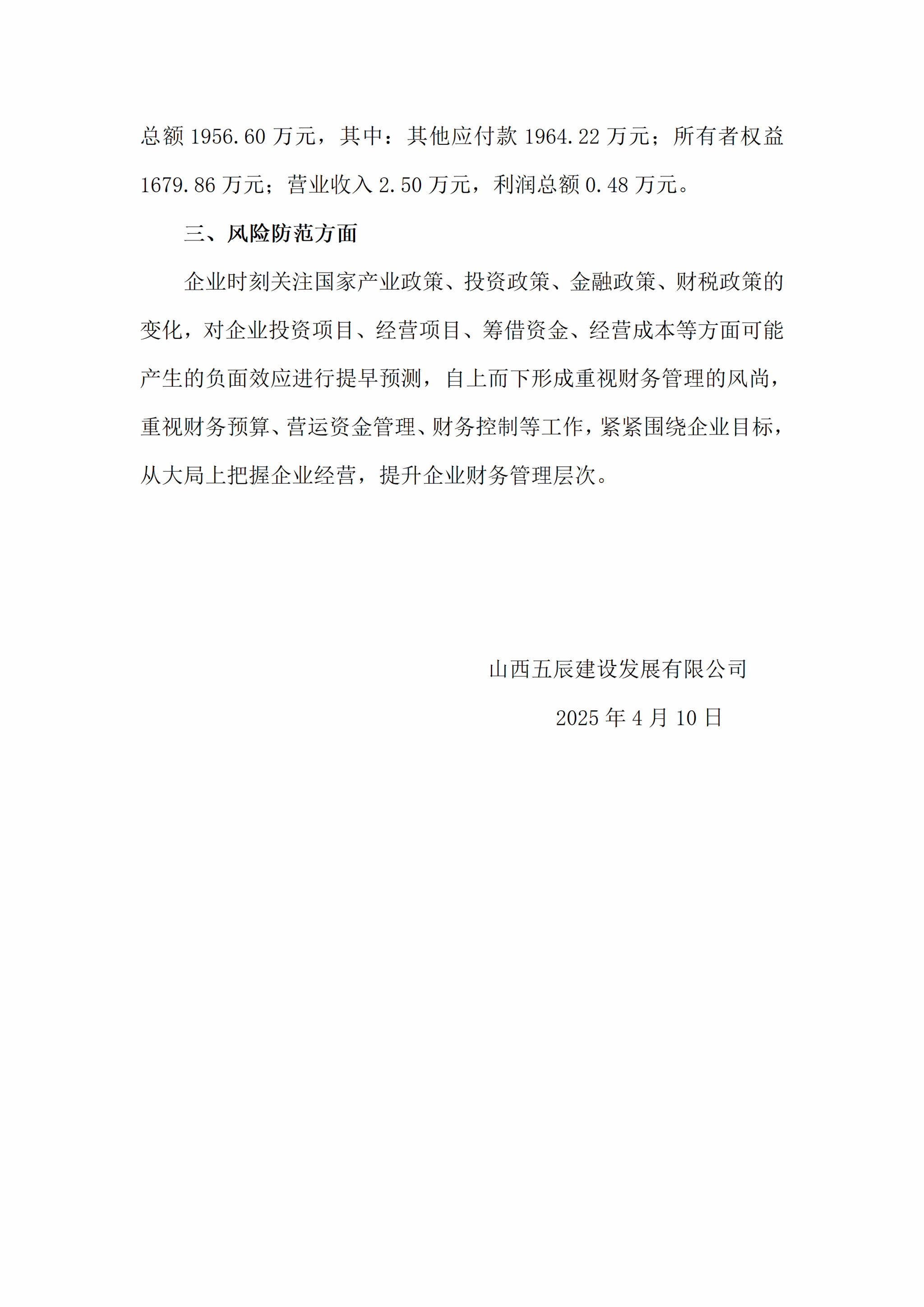 山西五辰建设发展有限公司2025年一季度企业重大信息公开