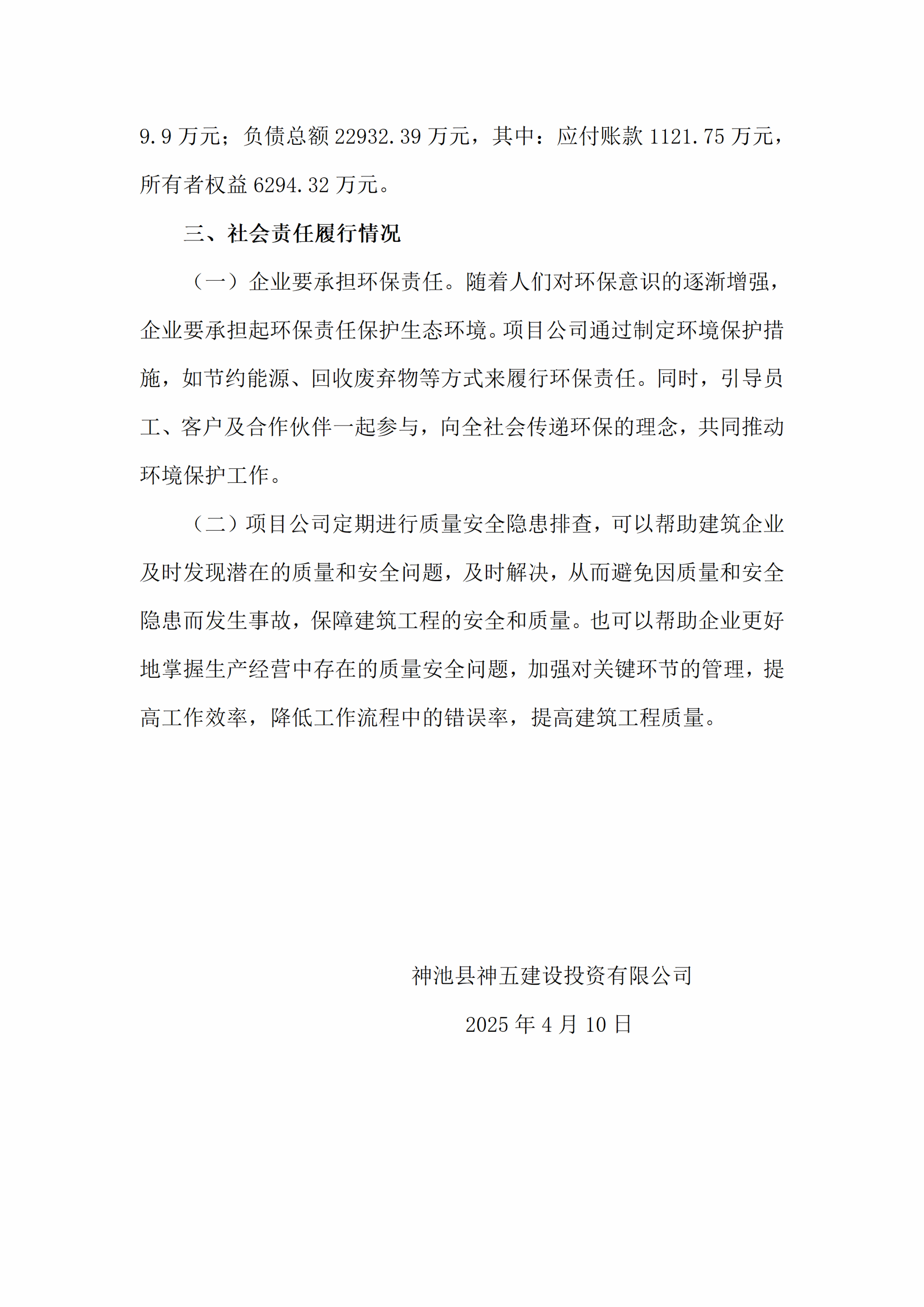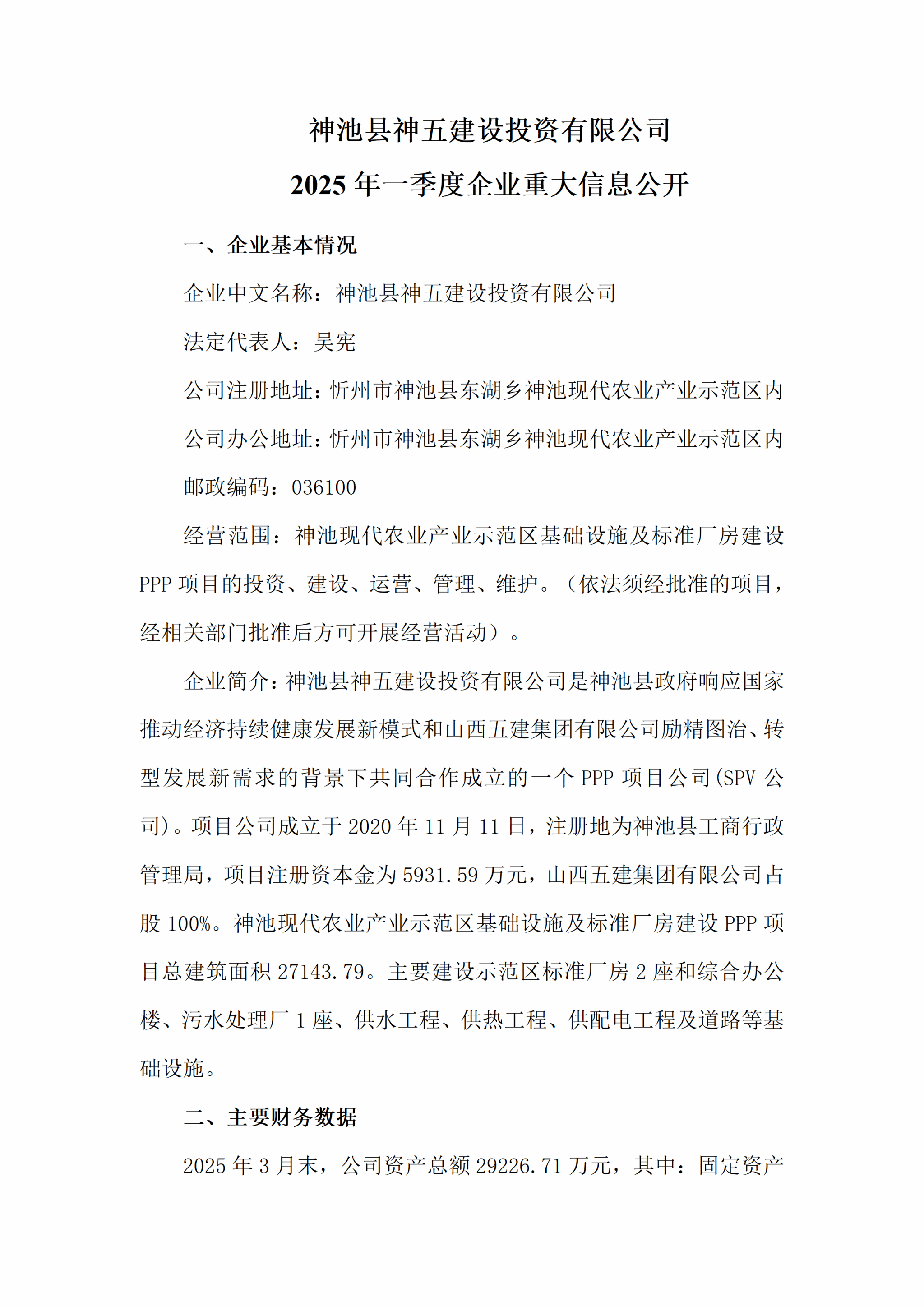 神池县神五建设投资有限公司2025年一第季度企业重大信息公开