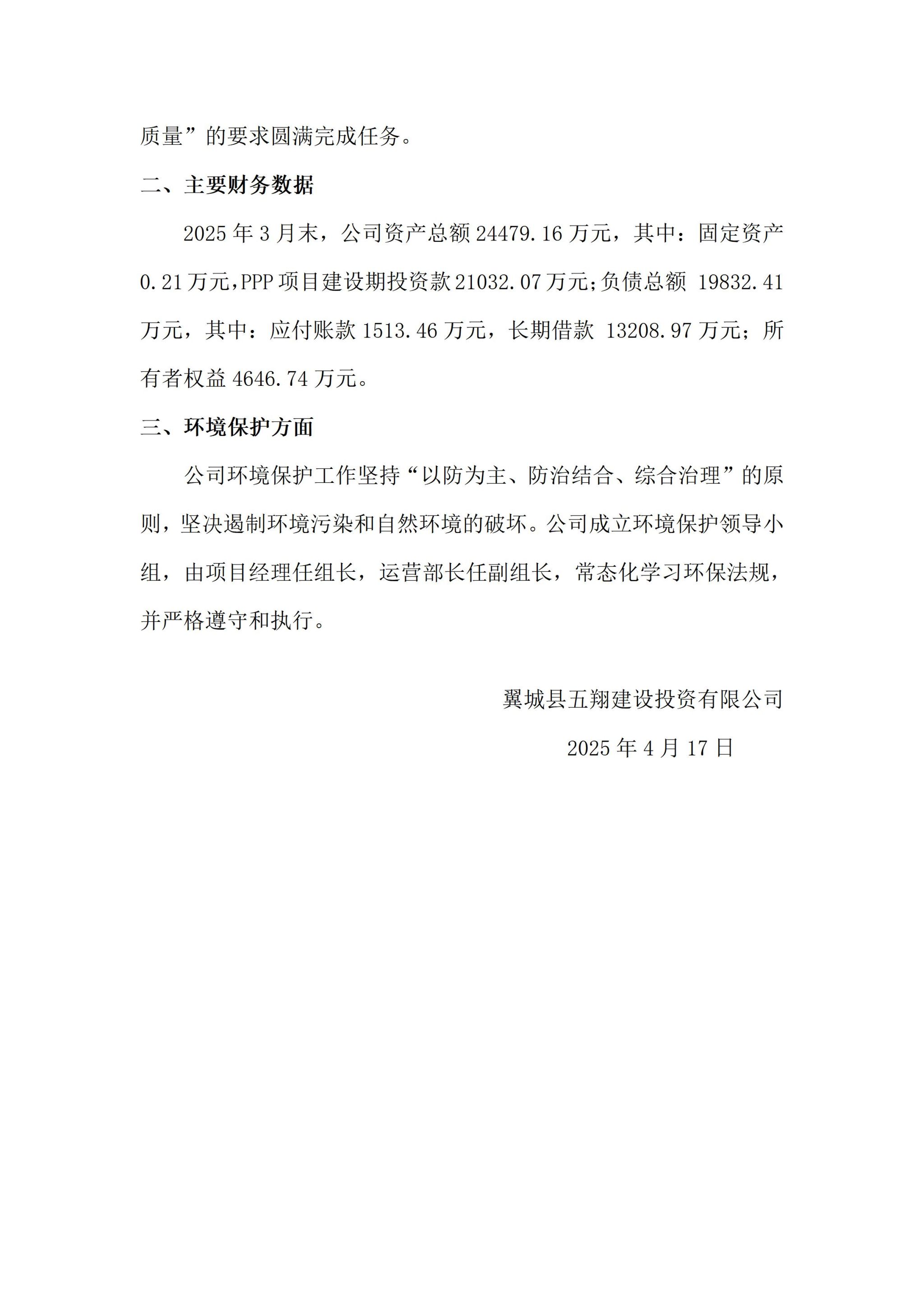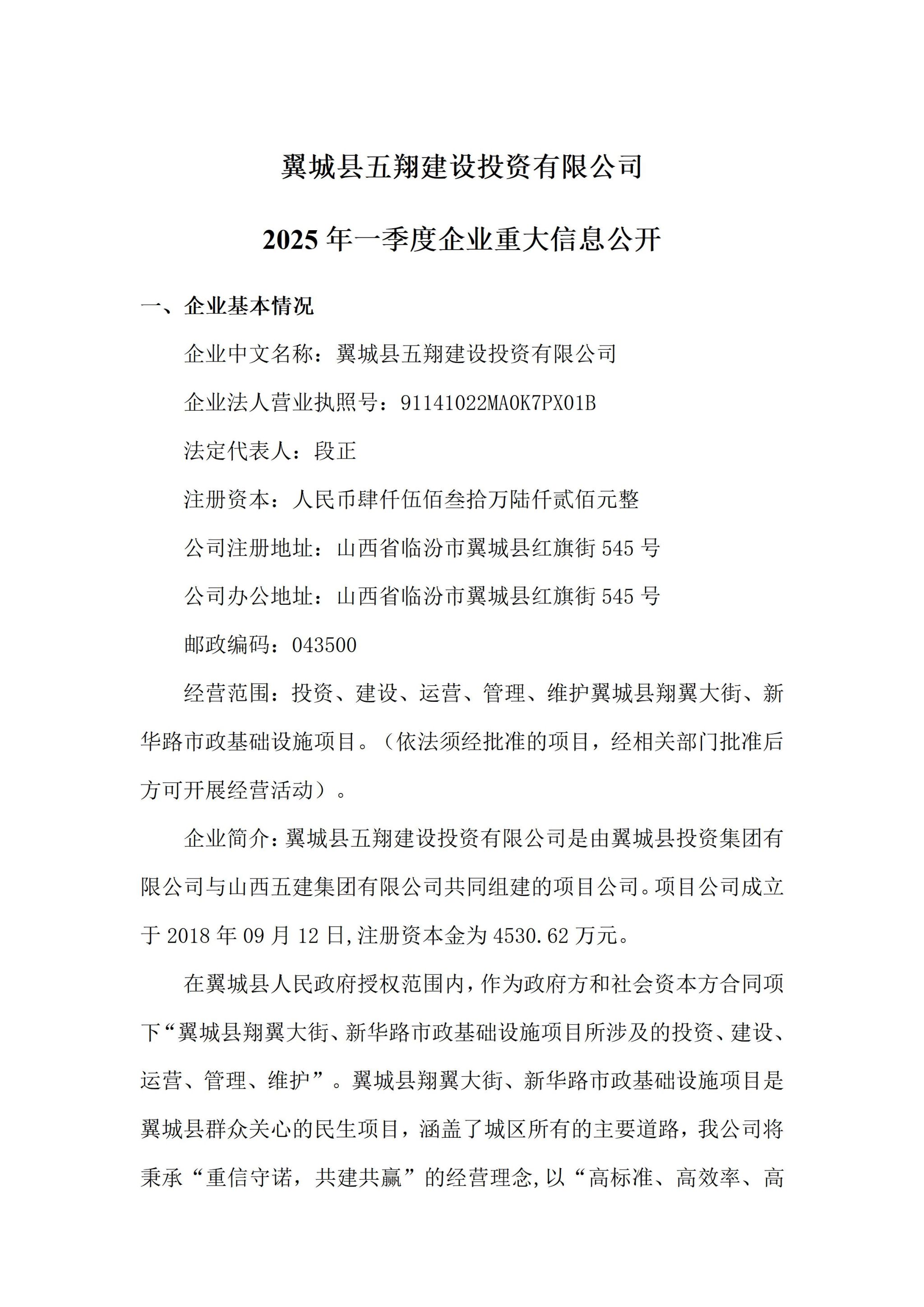 翼城县五翔建设投资有限公司2025年一季度企业重大信息公开