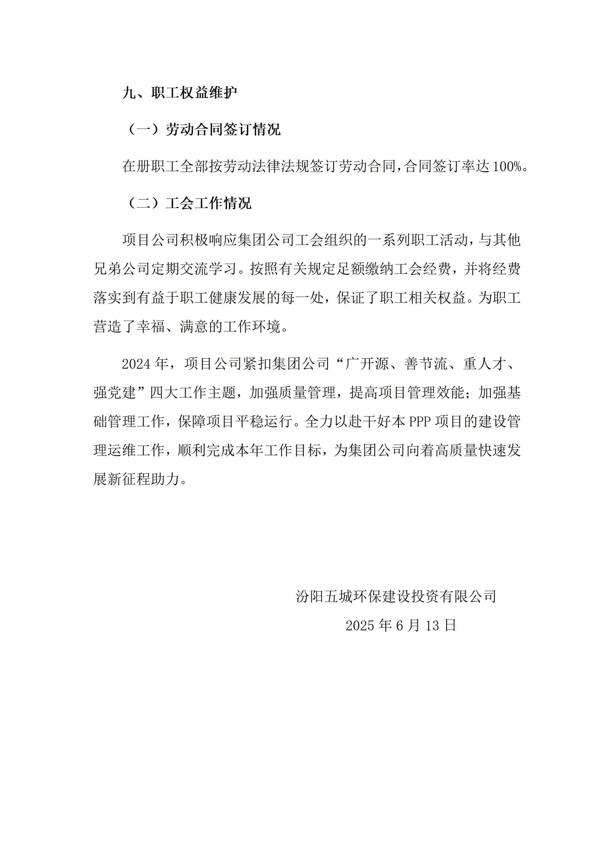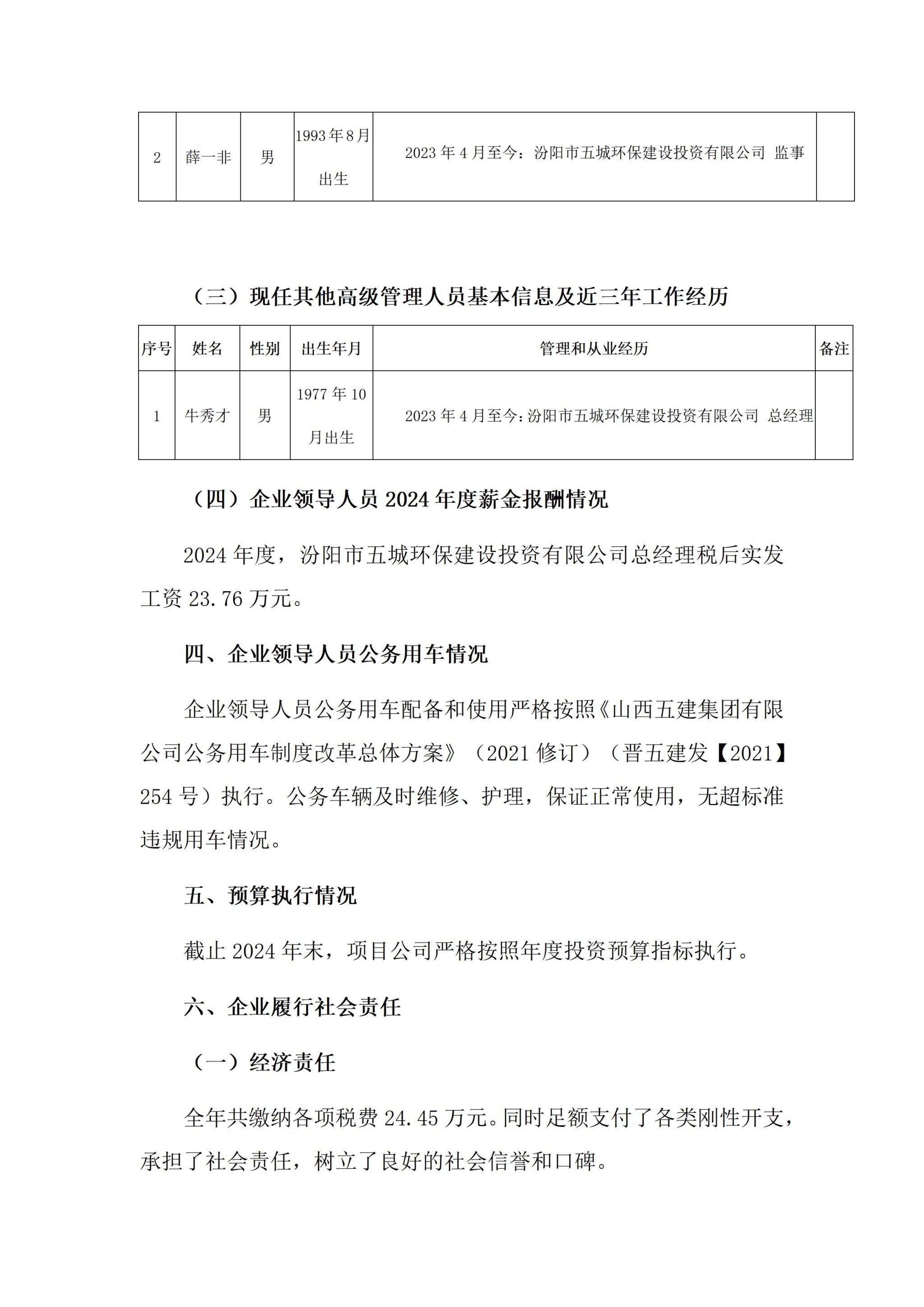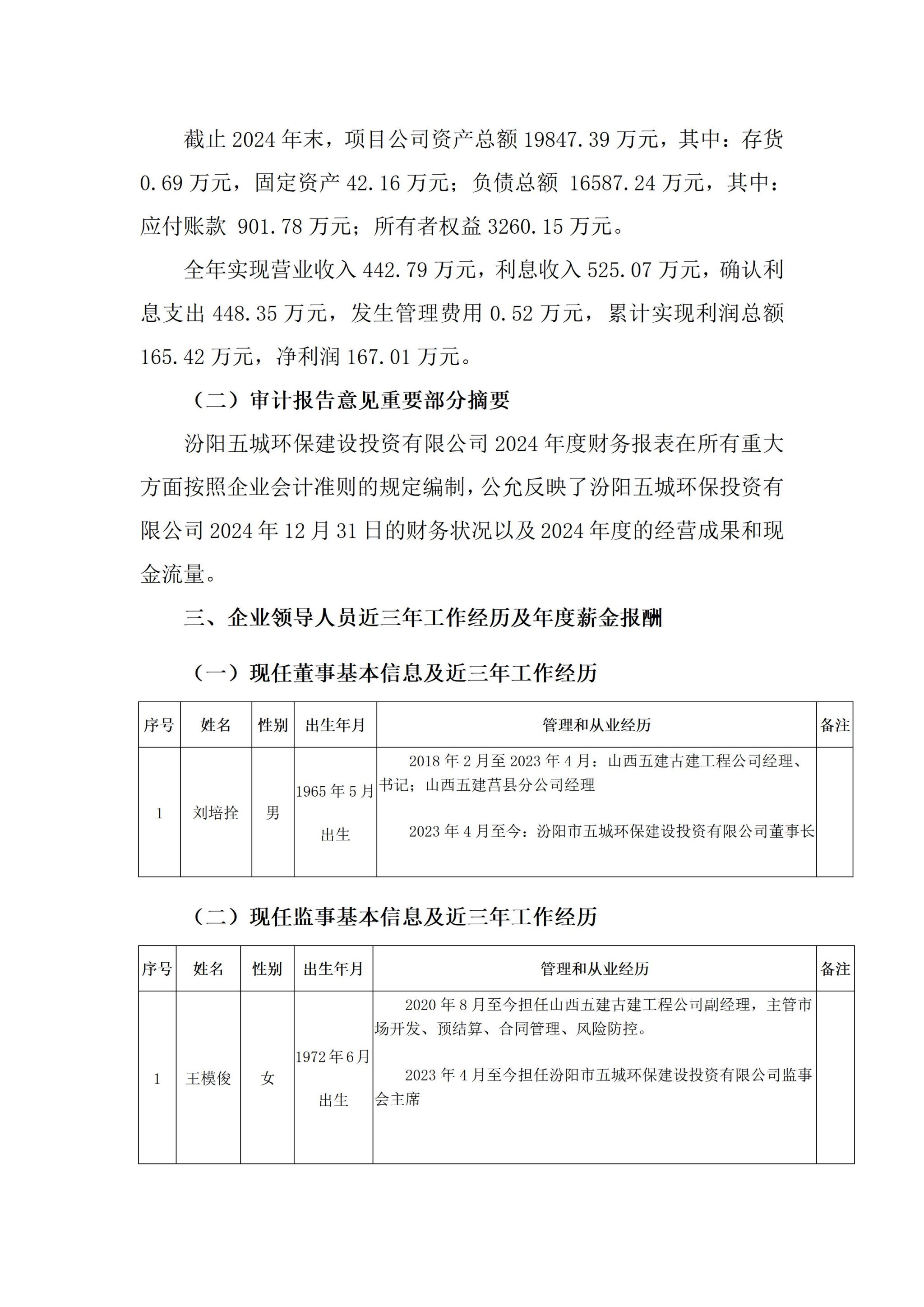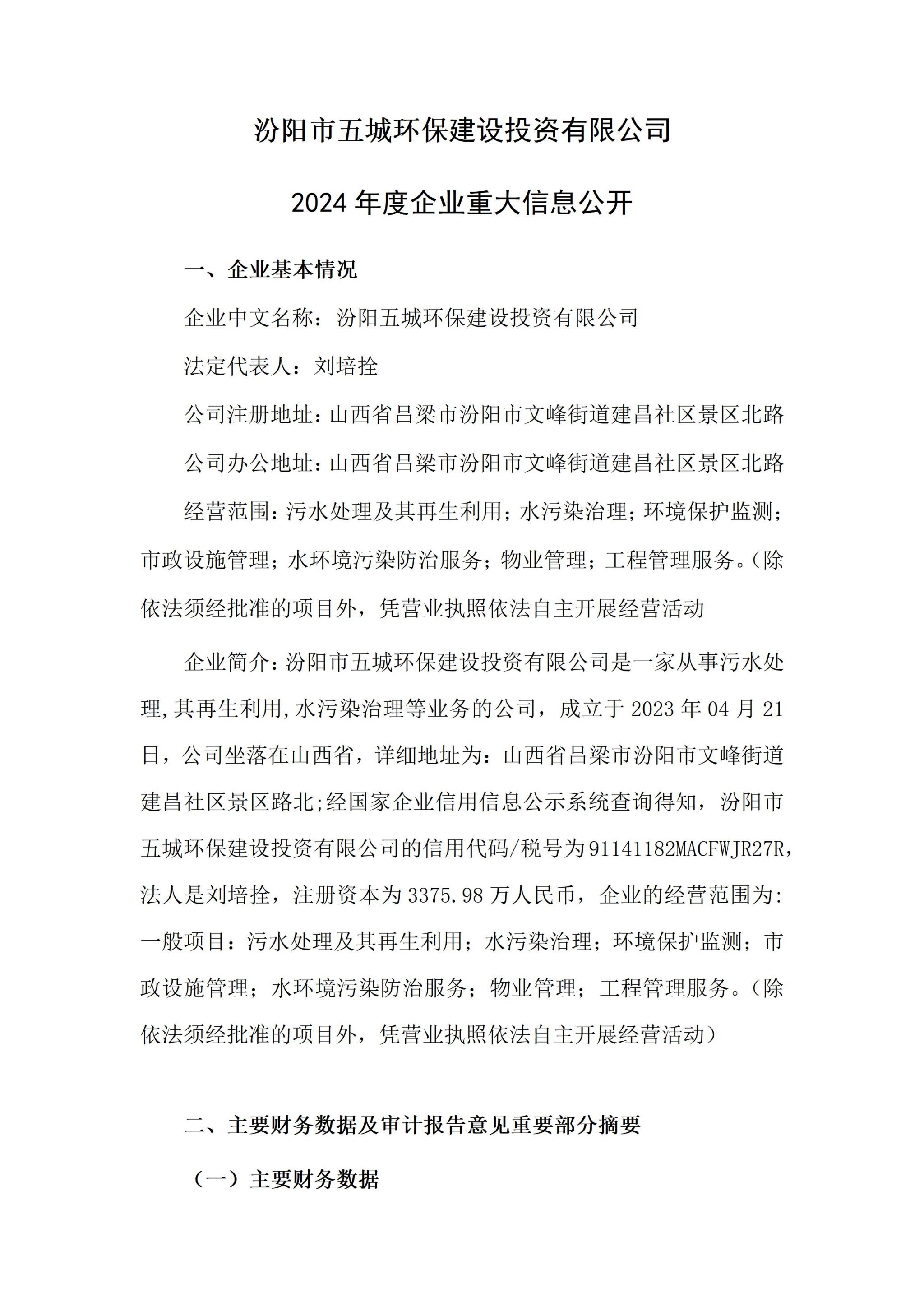 汾阳五城环保建设投资有限公司2024年度企业重大信息公开