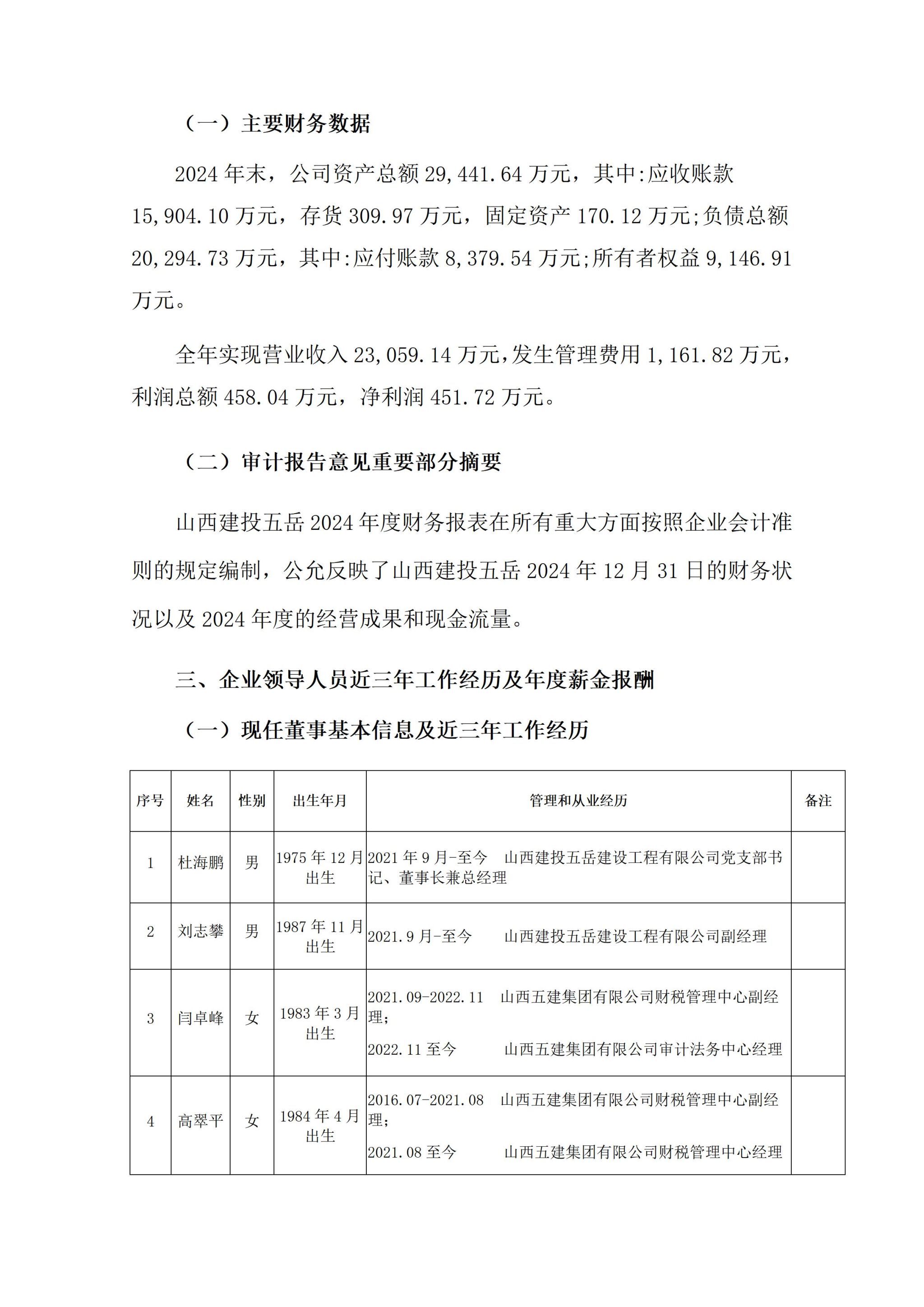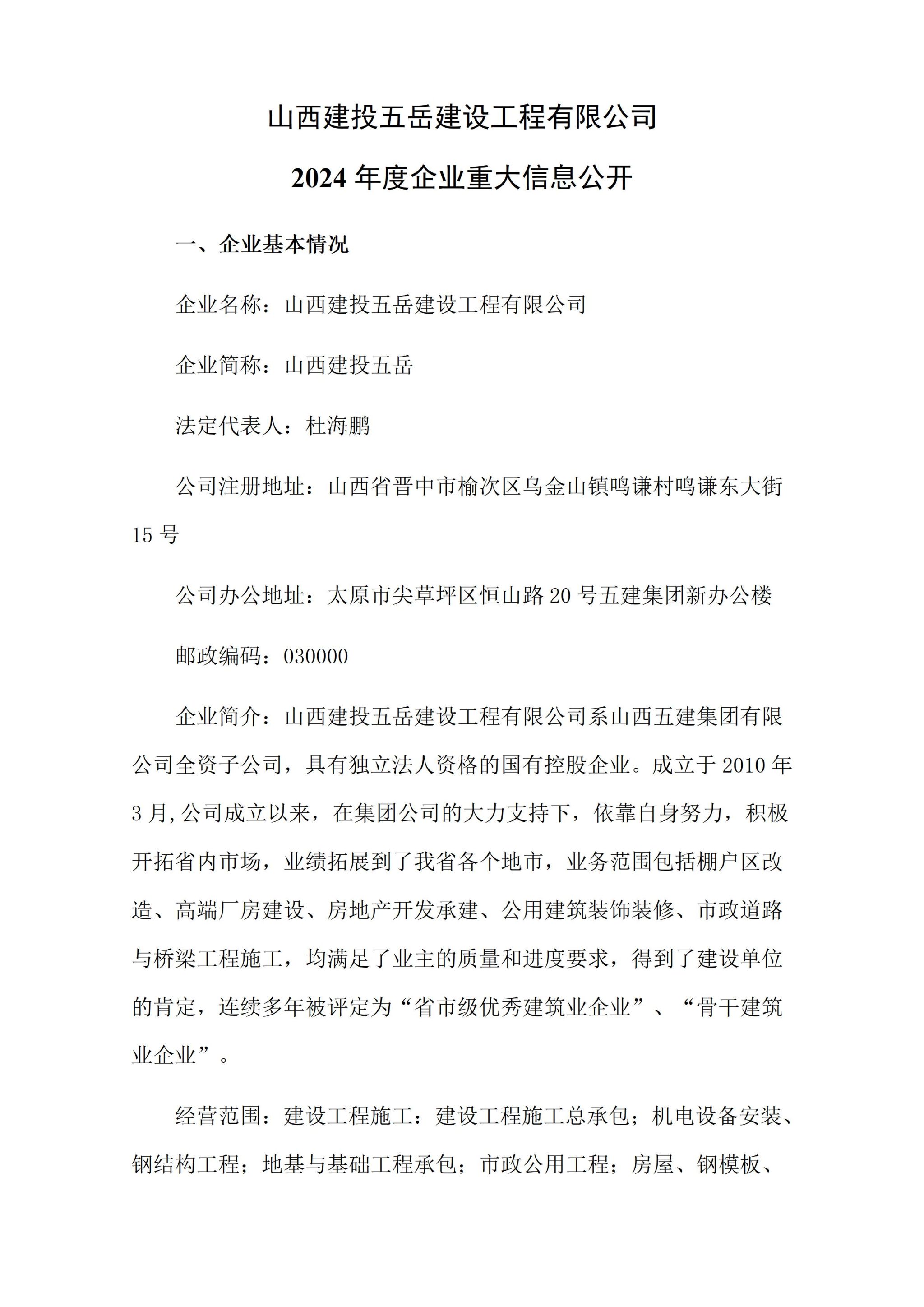 山西建投五岳建设工程有限公司2024年度企业重大信息公开