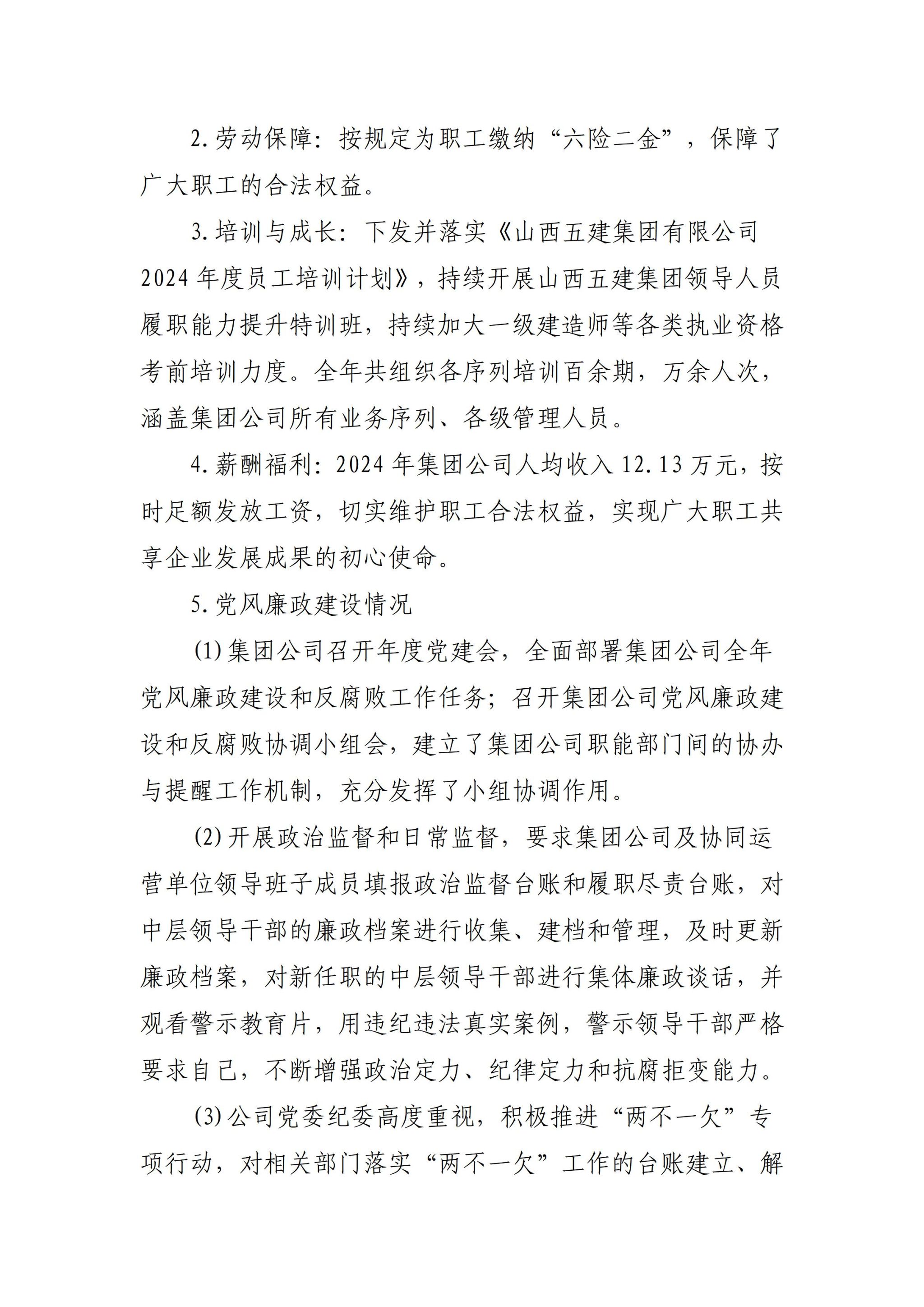 山西五辰建设发展有限公司2024年度企业重大信息公开