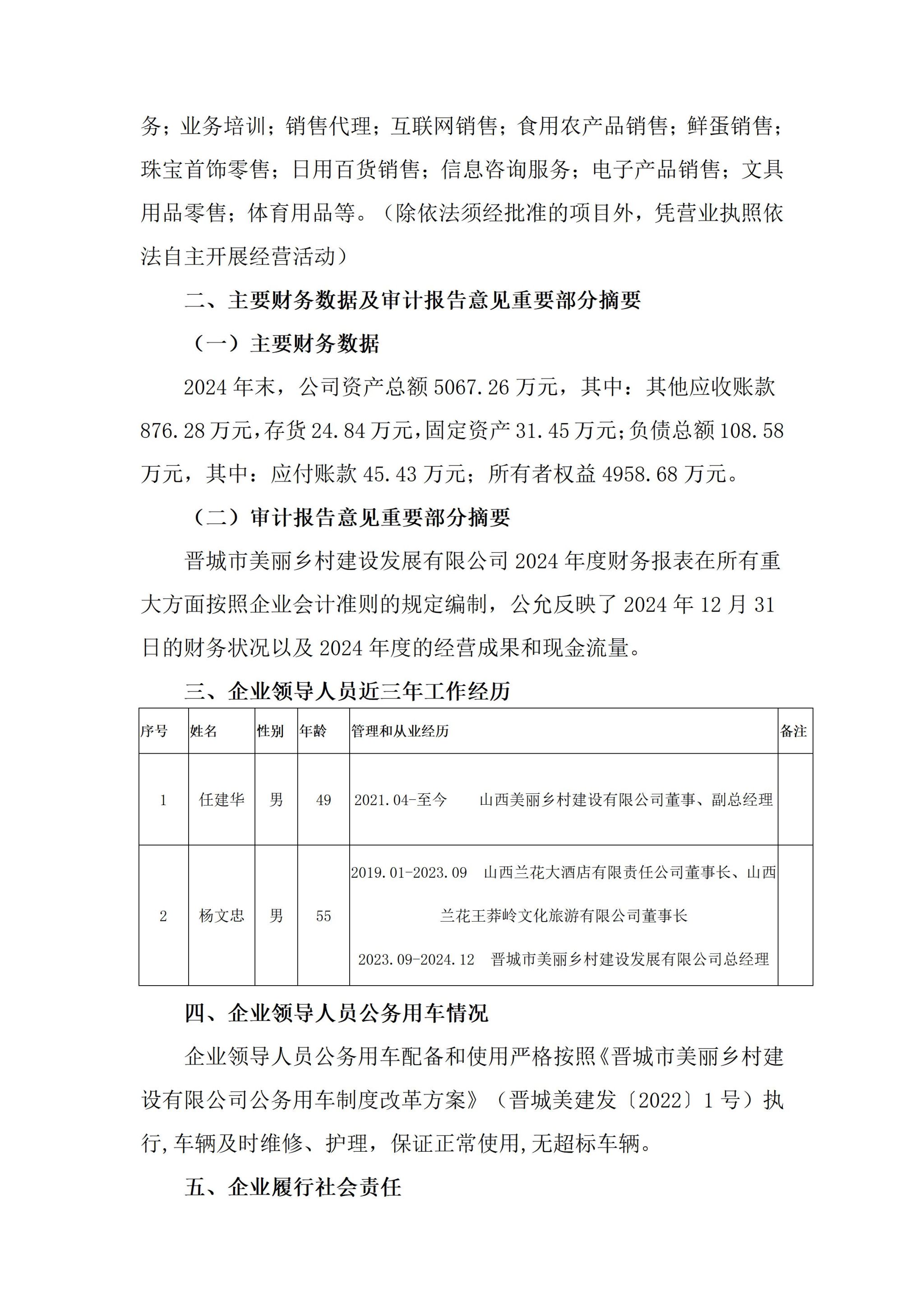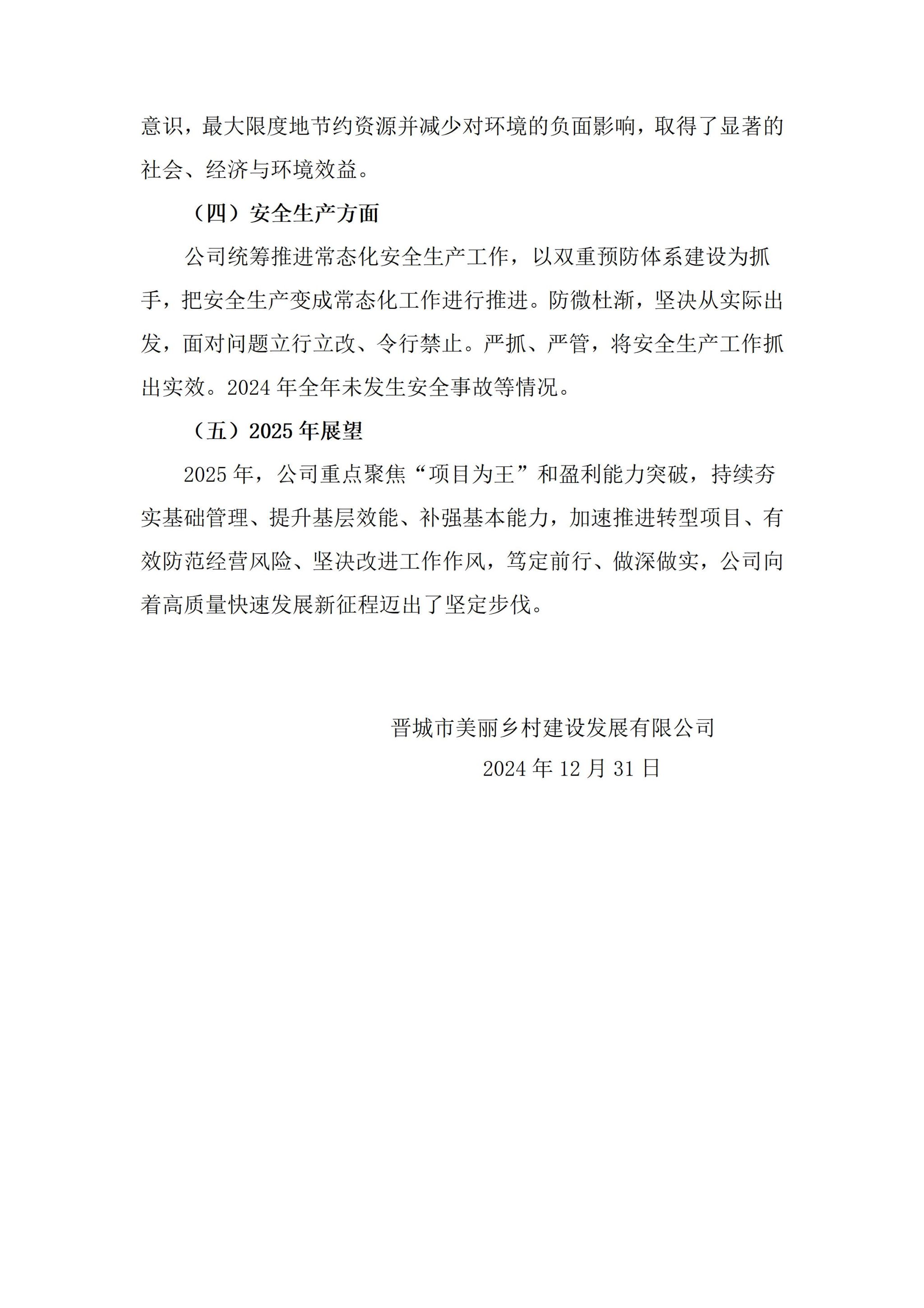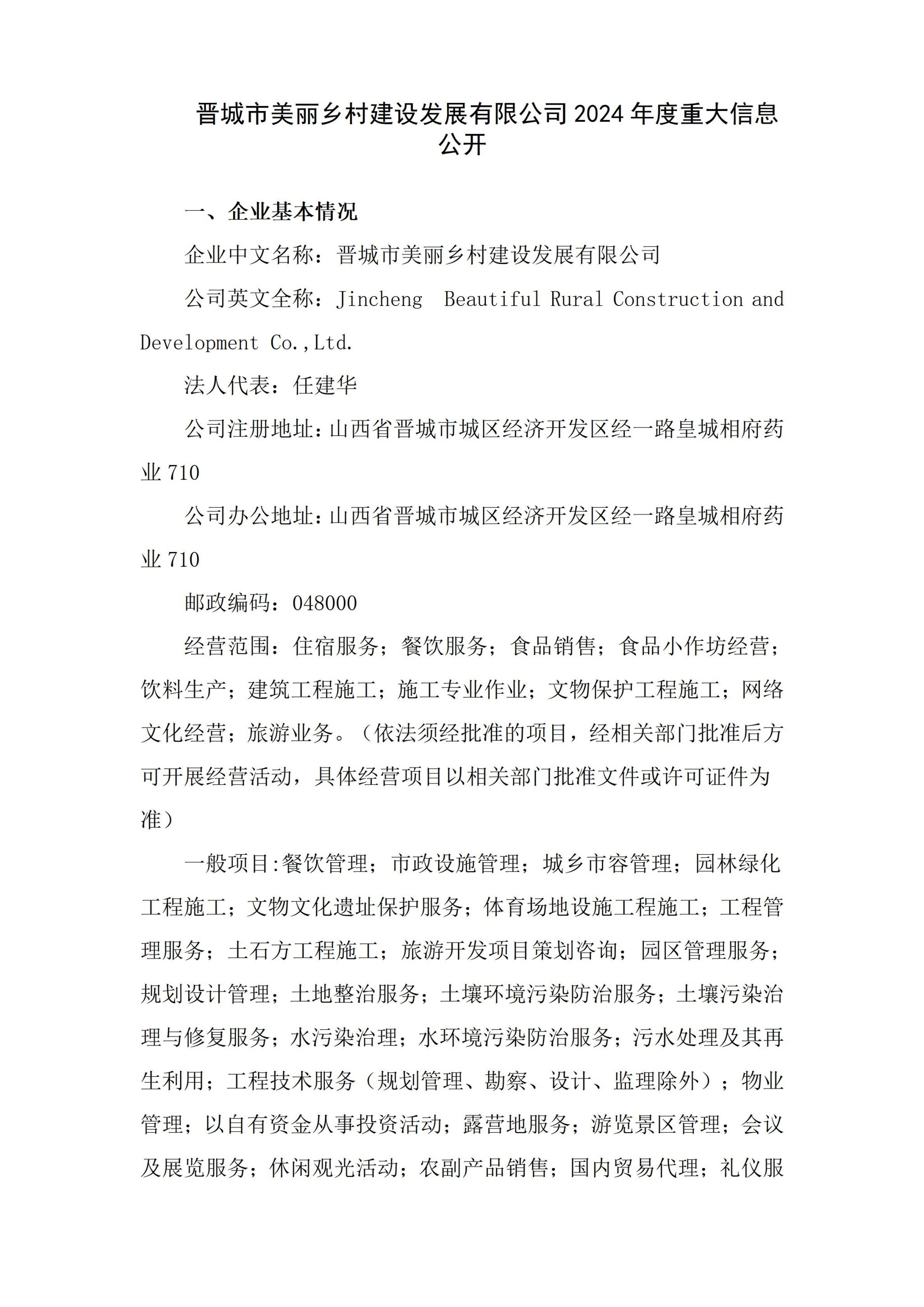 晋城市美丽乡村建设发展有限公司2024年度企业重大信息公开