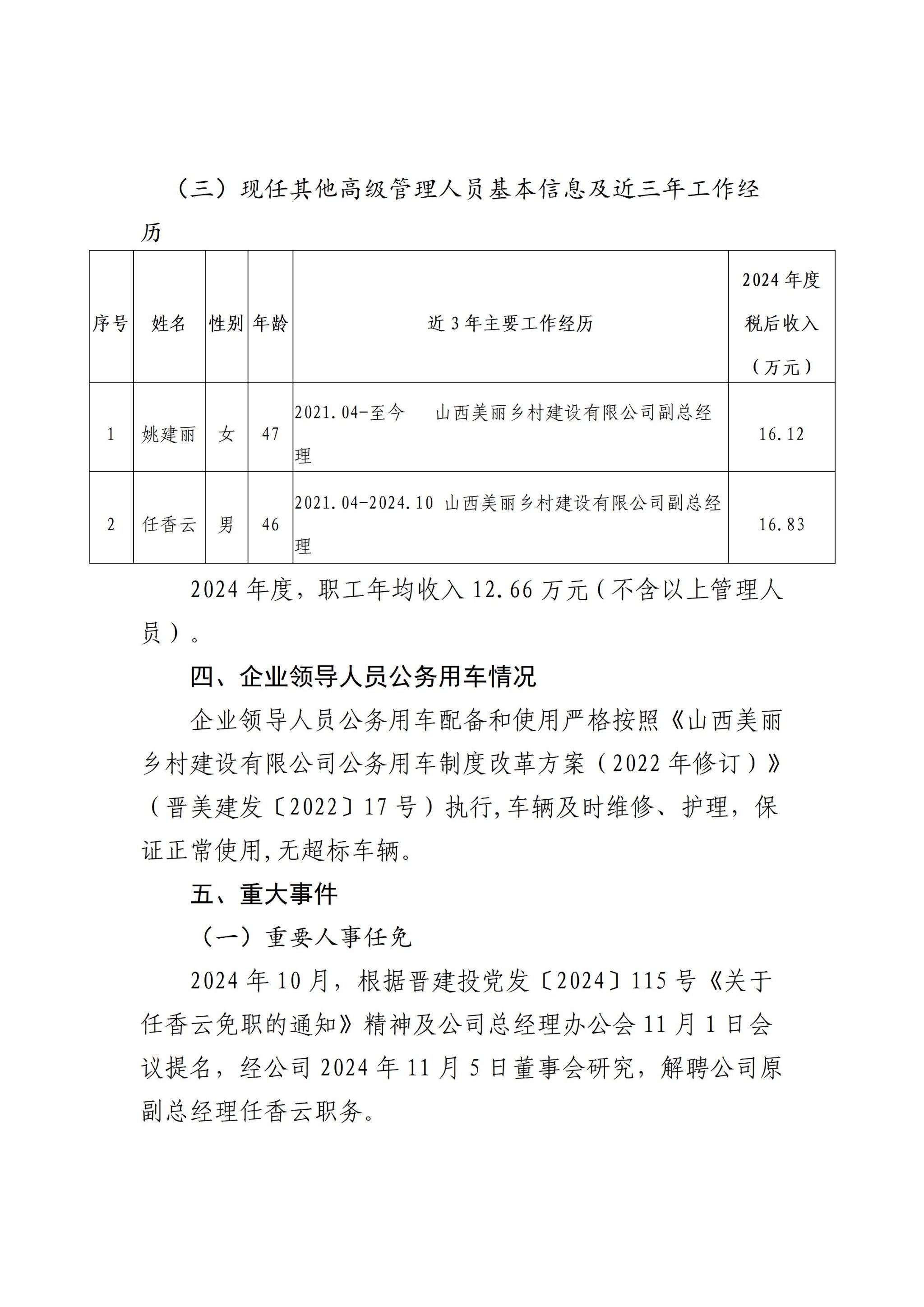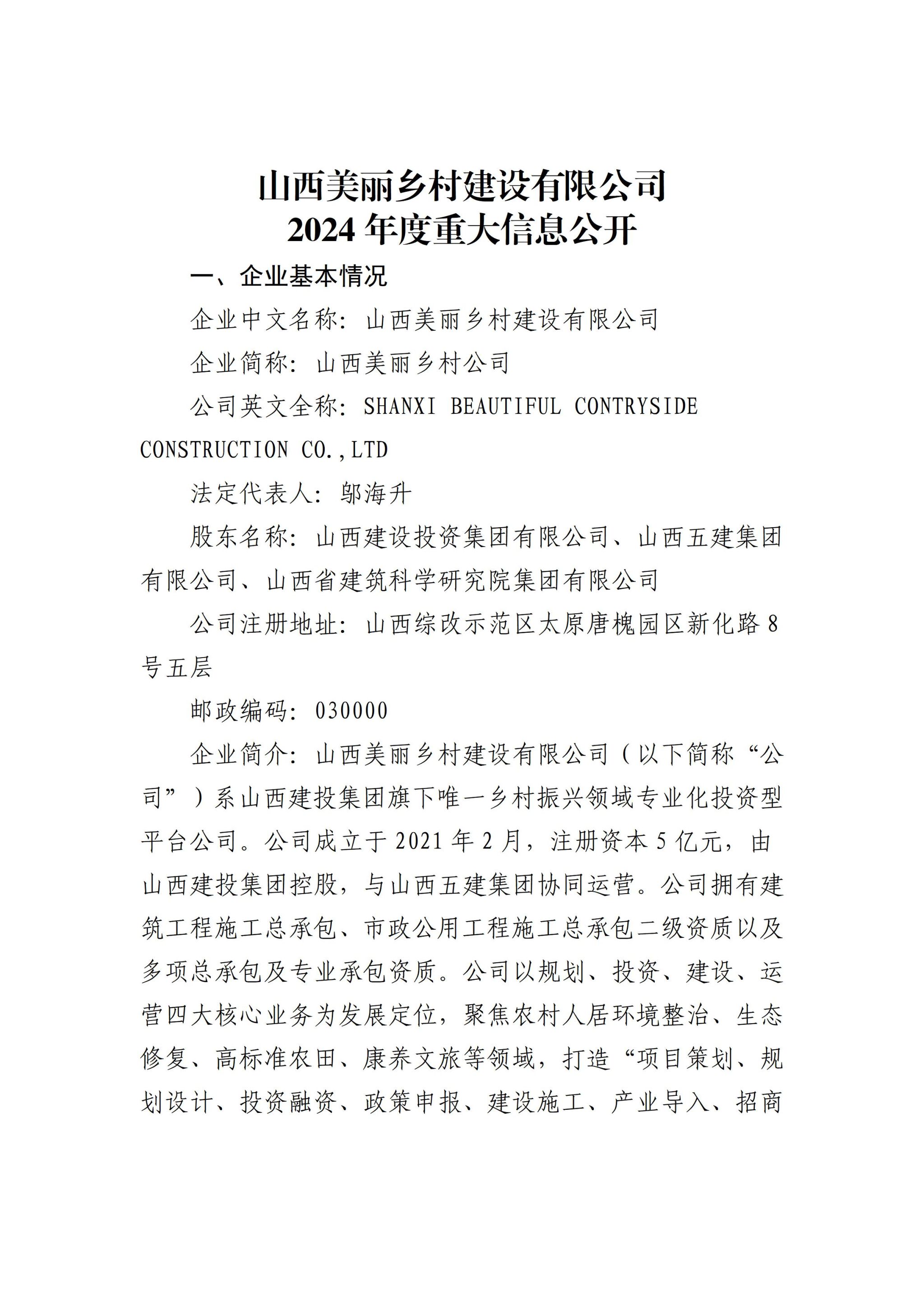 山西美丽乡村建设有限公司2024年度重大信息公开