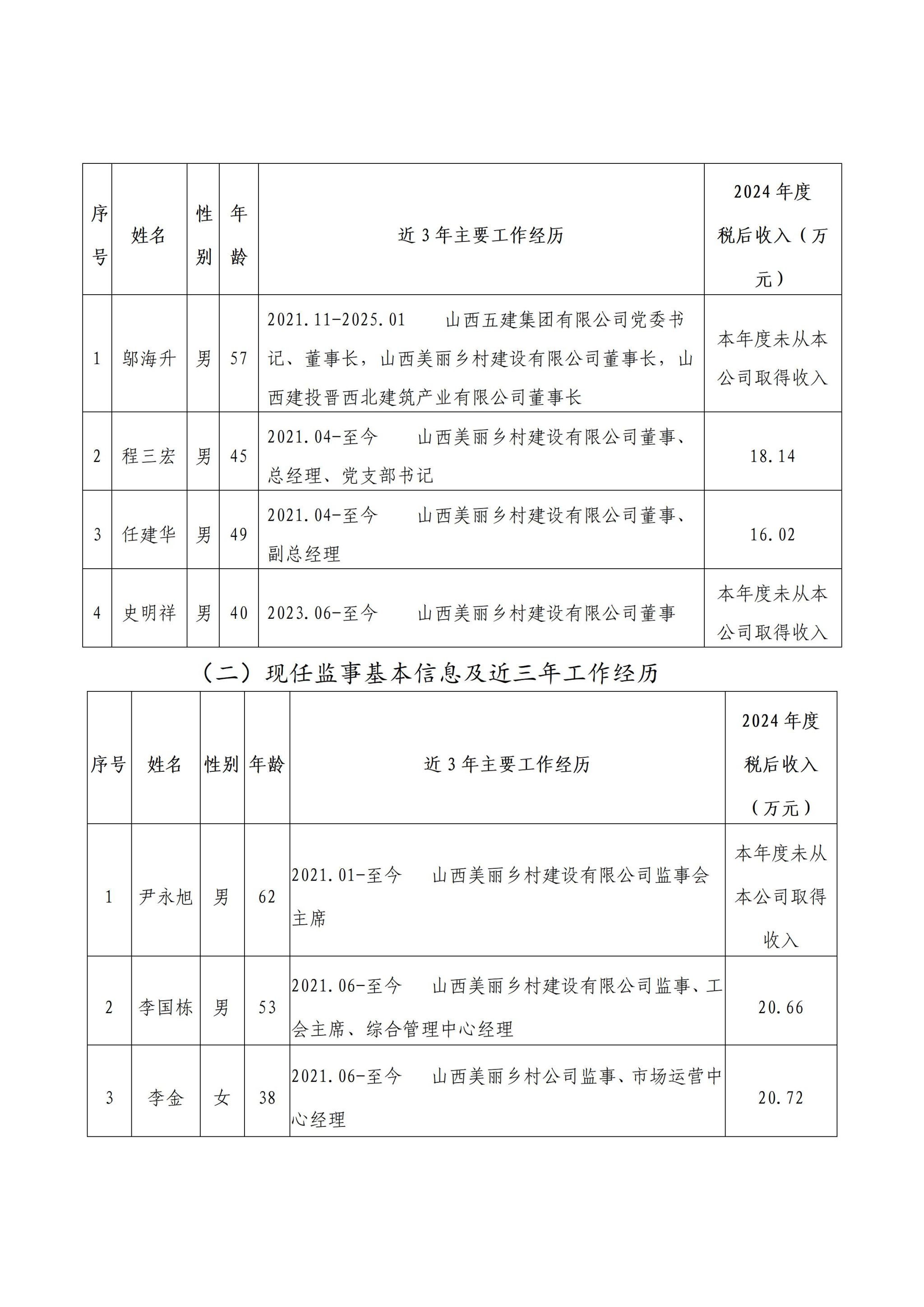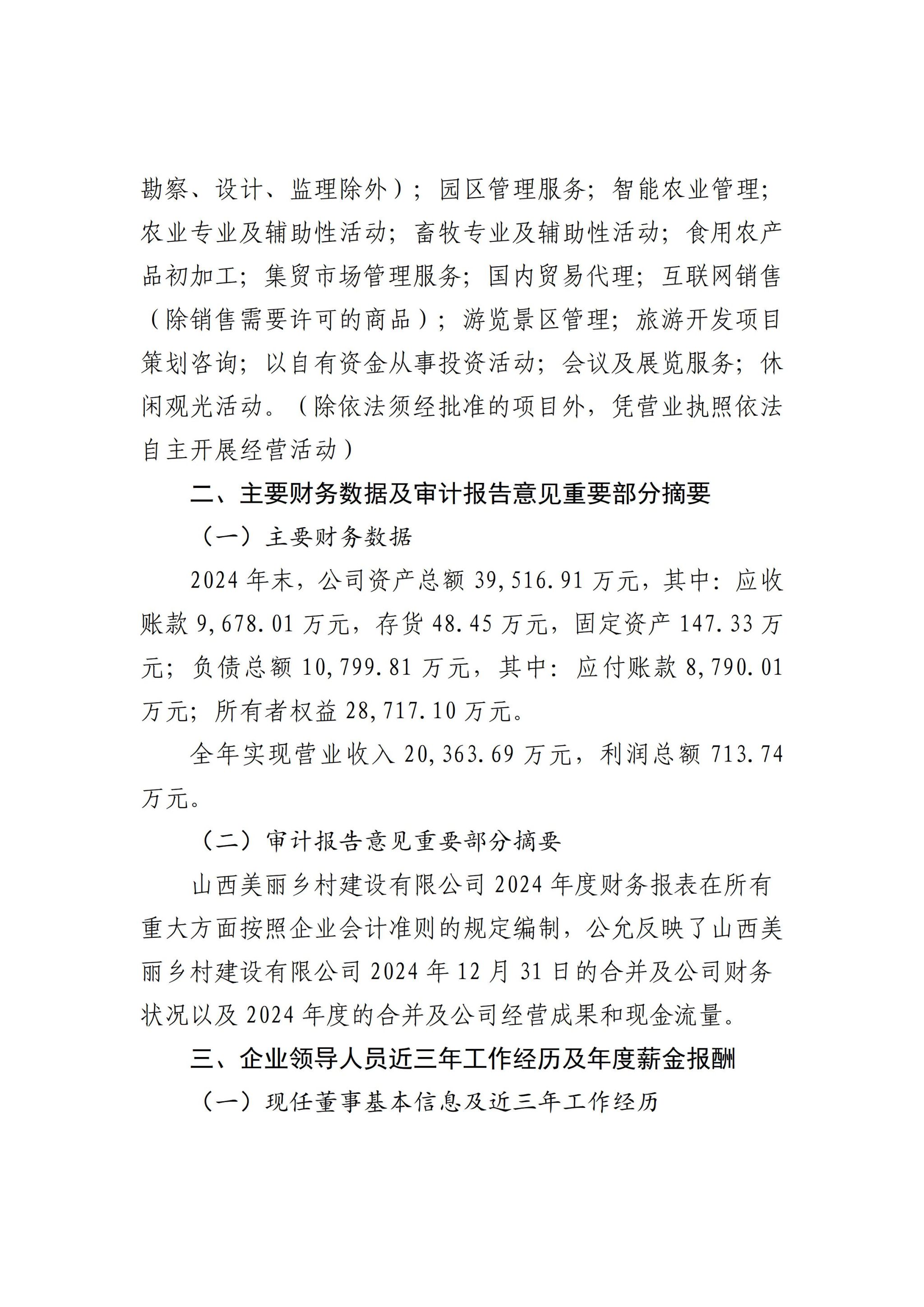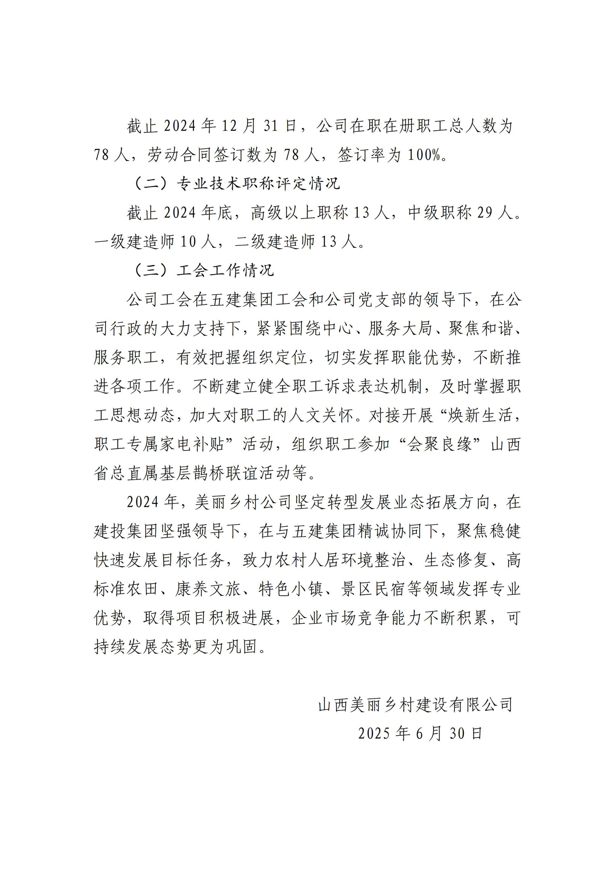山西美丽乡村建设有限公司2025年二季度企业重大信息公开