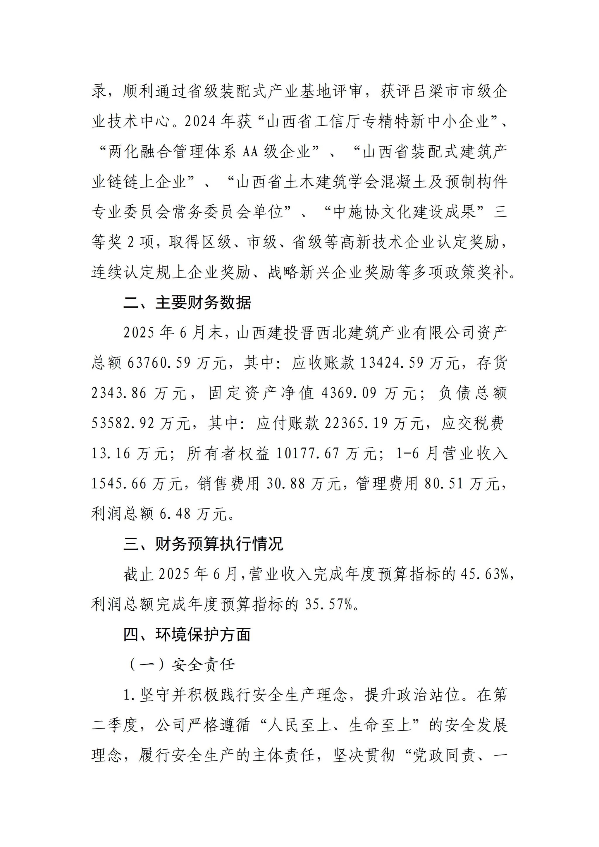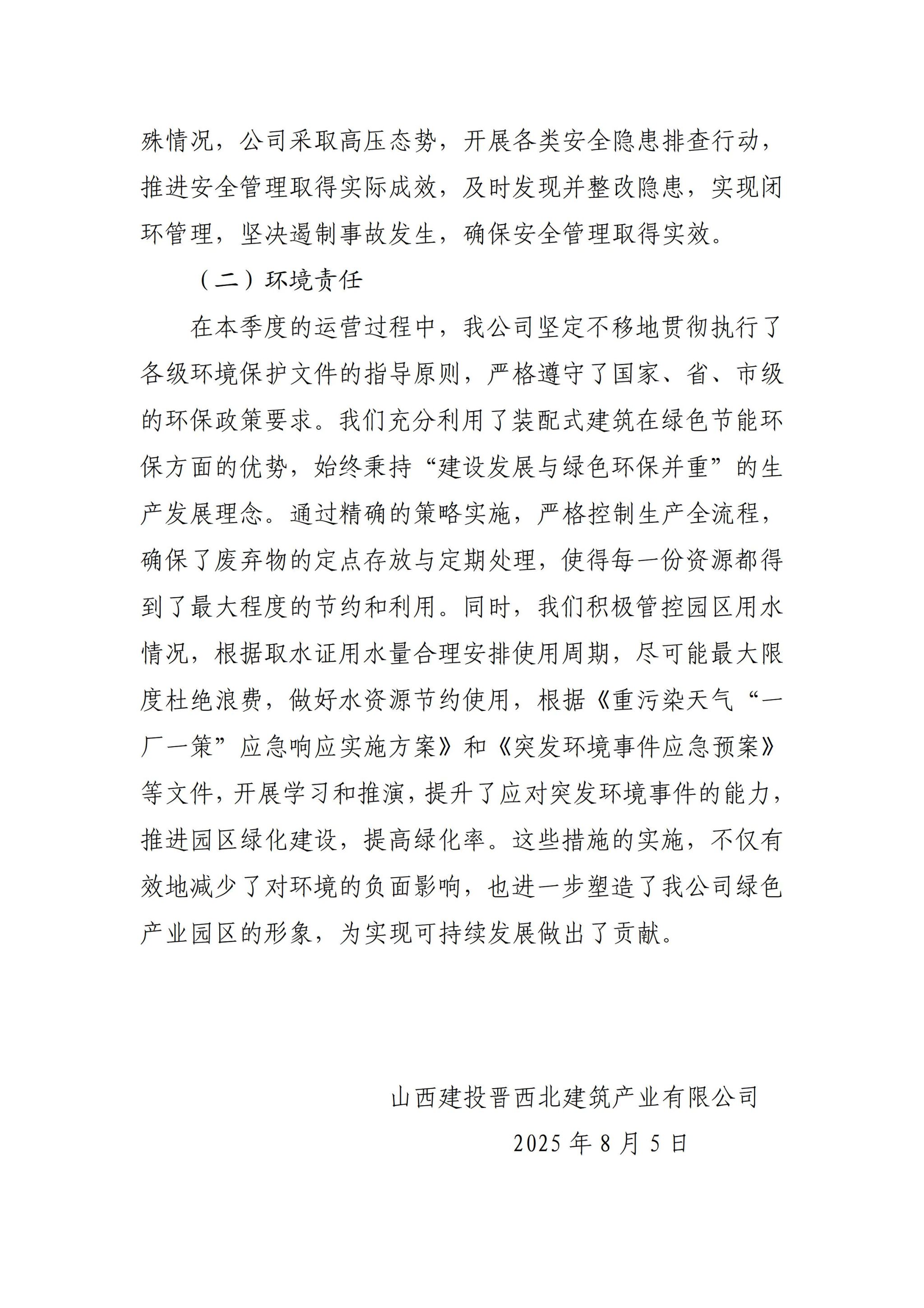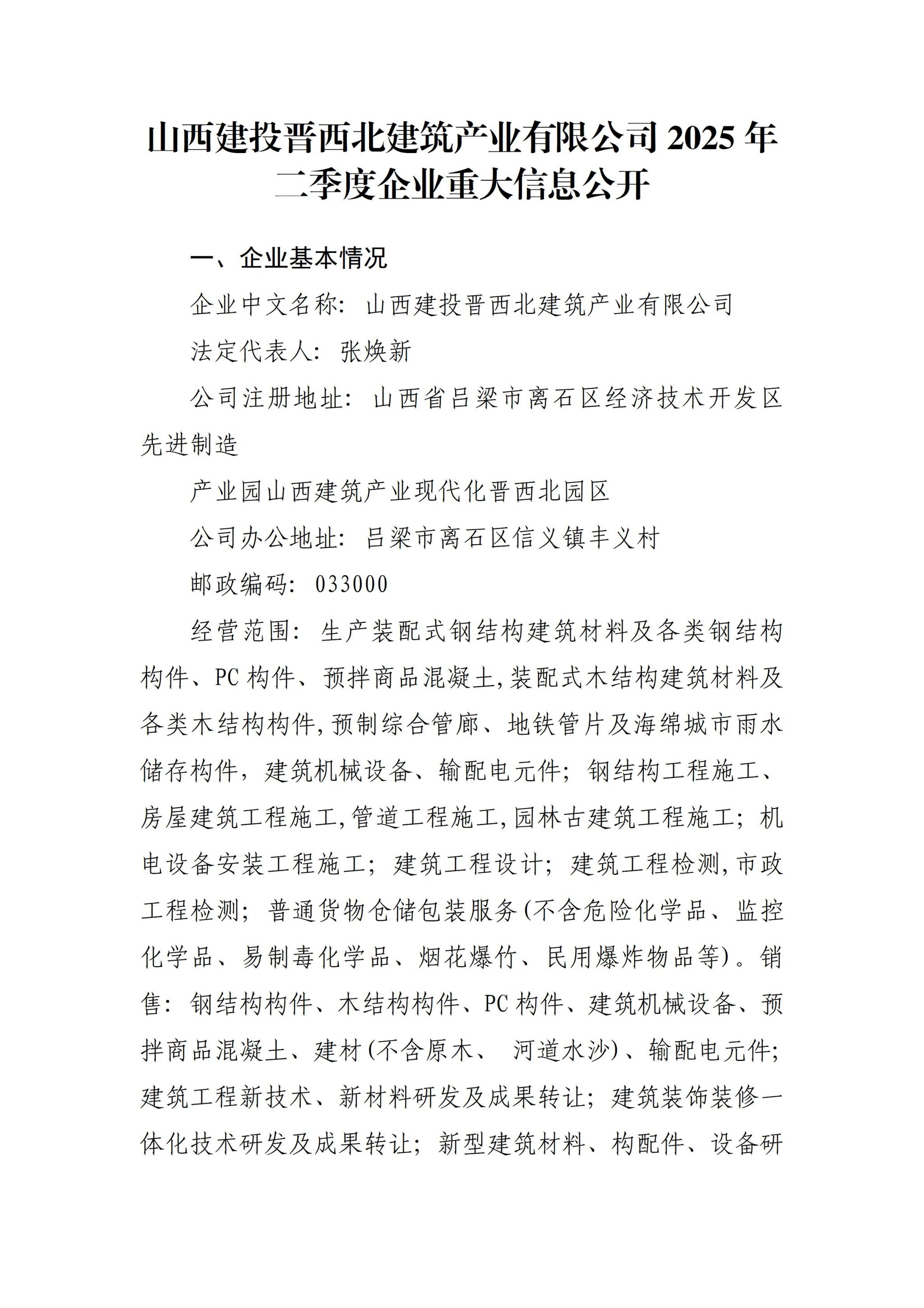 山西建投晋西北建筑产业有限公司2025年二季度重大信息公开
