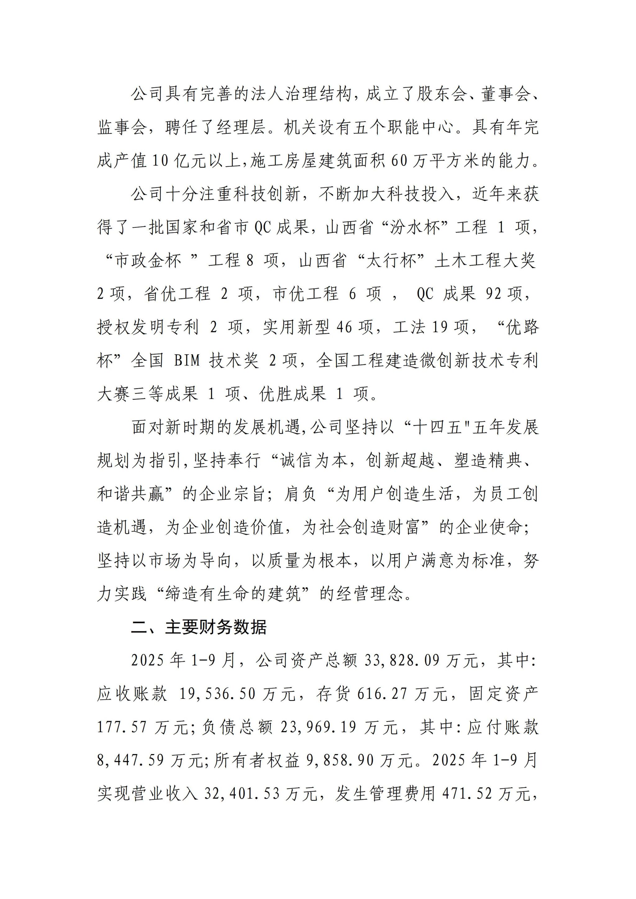 山西建投(晋中)建设发展有限公司2025年三季度企业重大信息公开