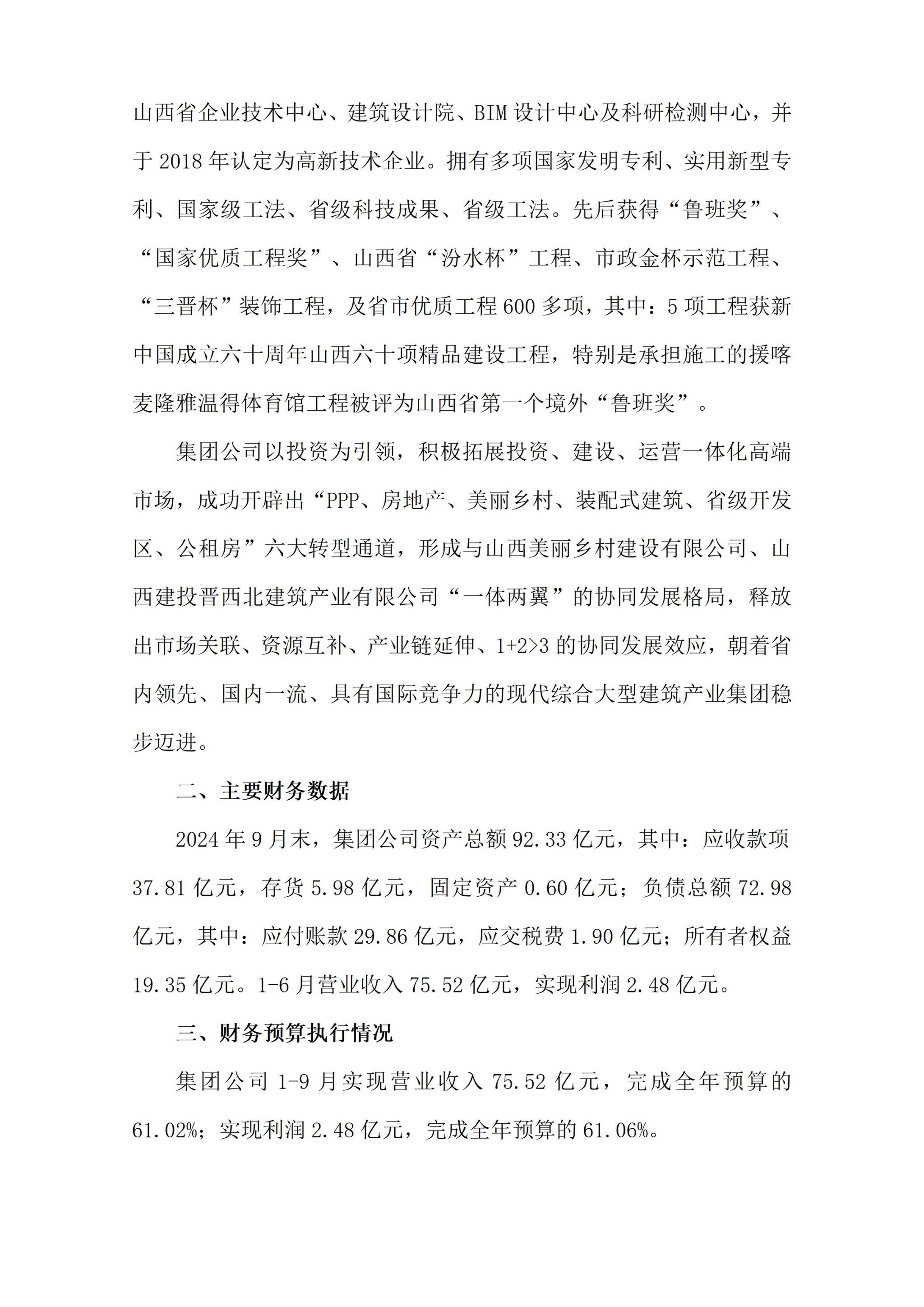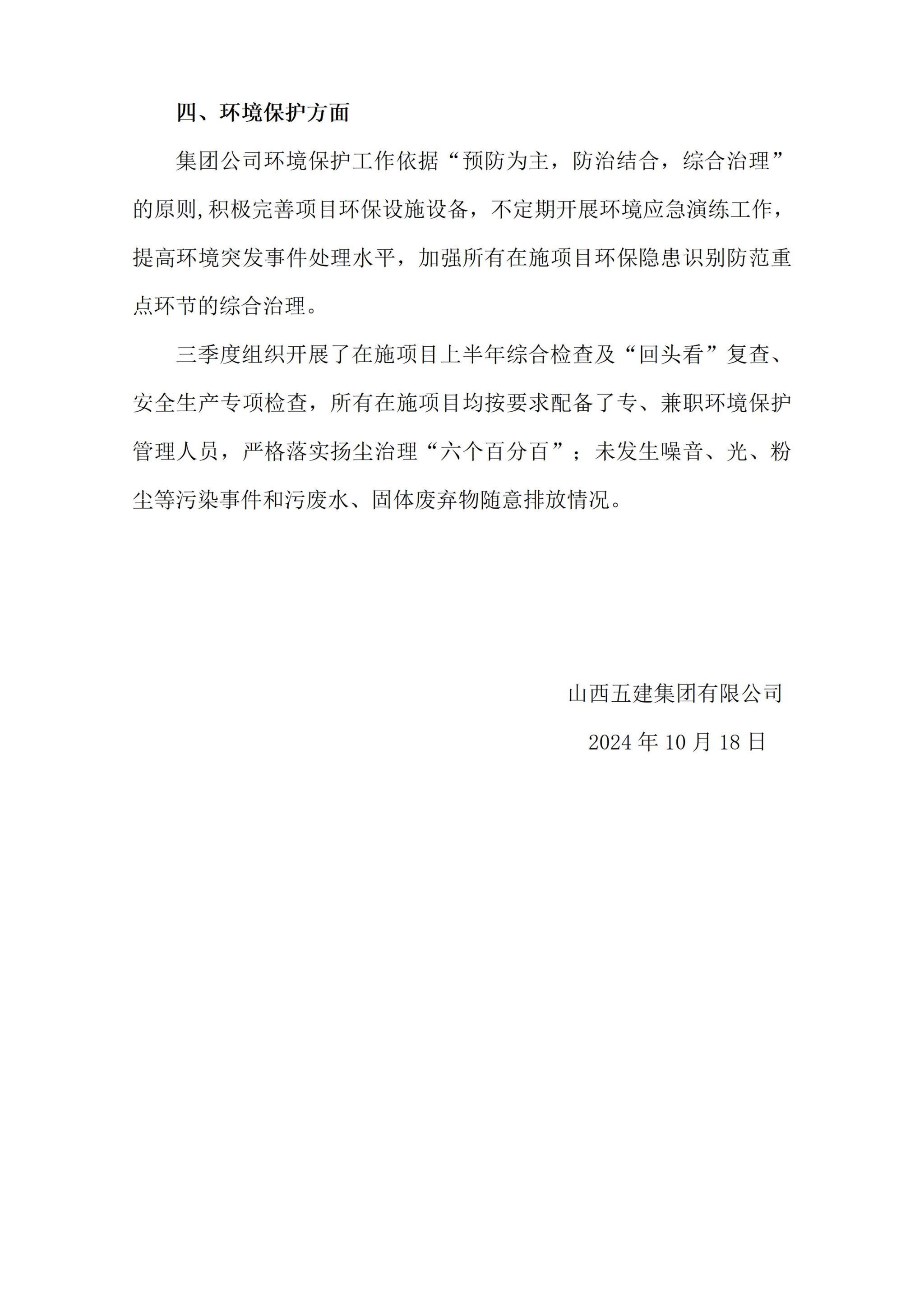 山西五建集团有限公司2024年三季度企业重大信息公开