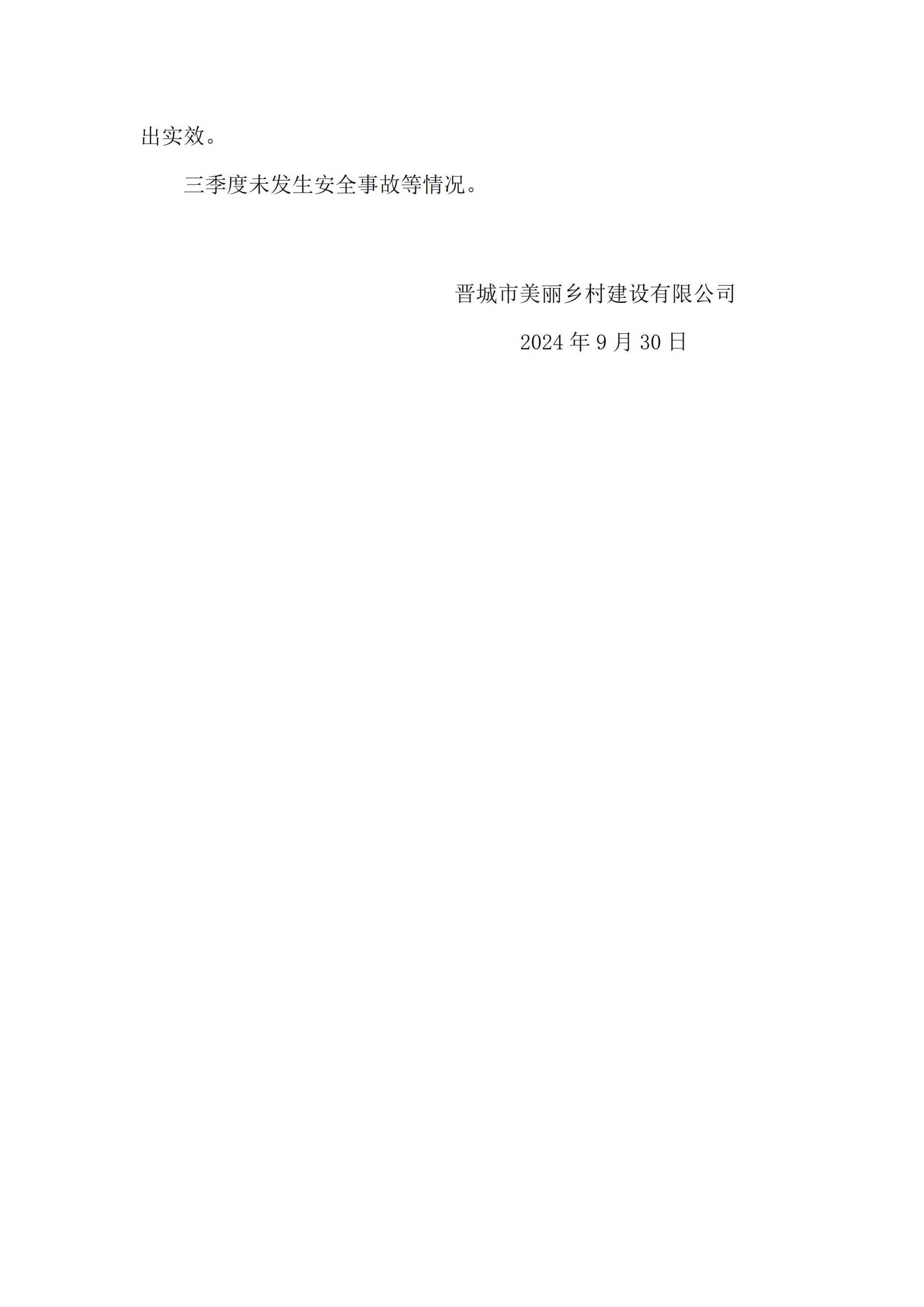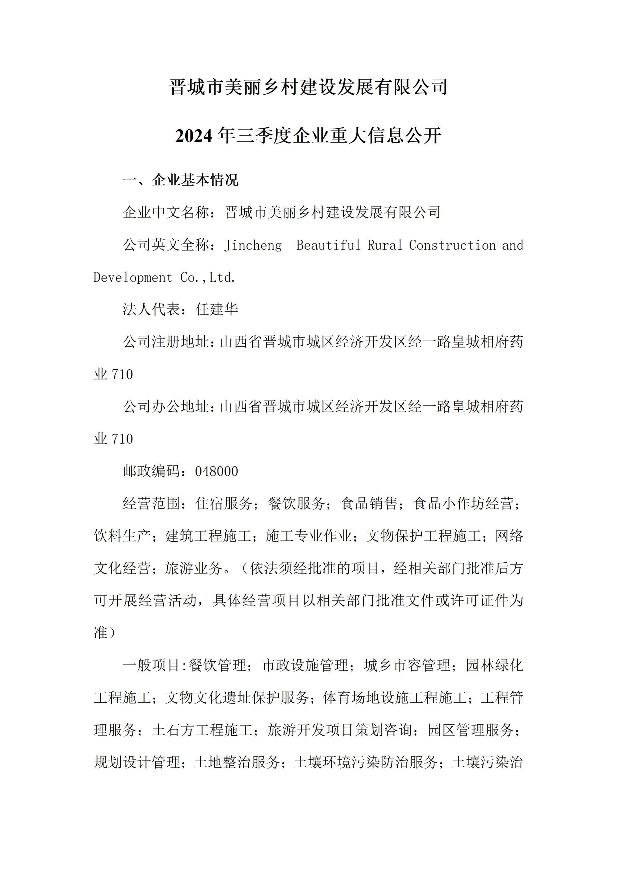 晋城市美丽乡村建设发展有限公司2024年三季度企业重大信息公开